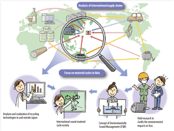 The center has many successful records of industrial ecology related research such as material flow analysis (MFA) and life cycle assessment (LCA), which makes CMW the leading research center in the area of industrial ecology in Japan.